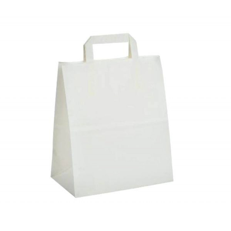 Бумажный пакет Белый 240х140х280 мм с плоскими ручками