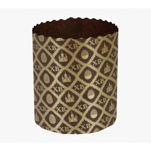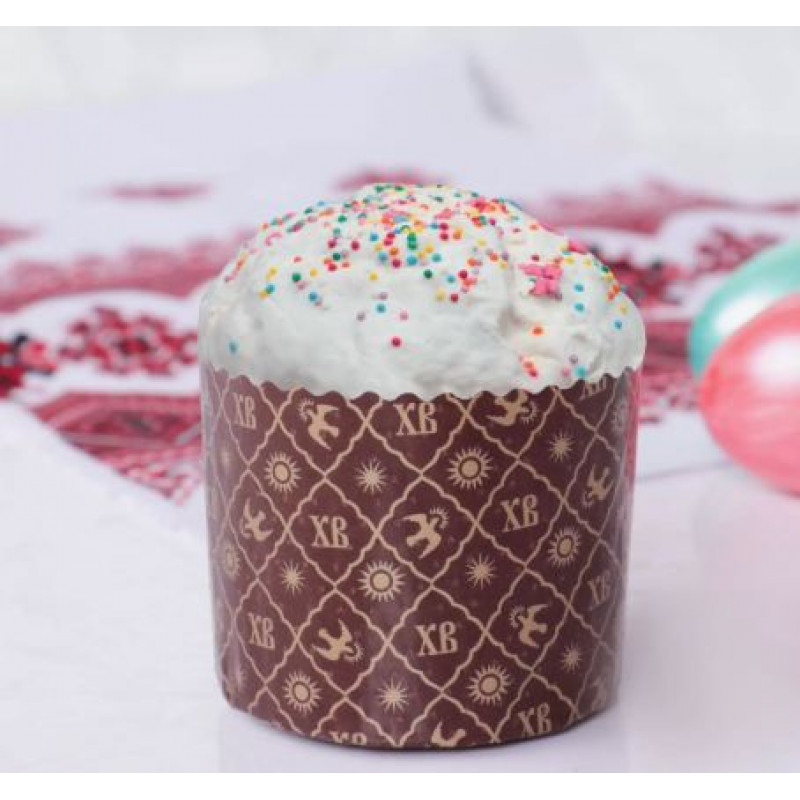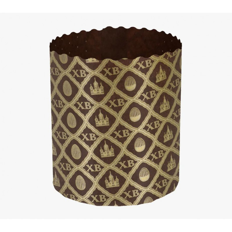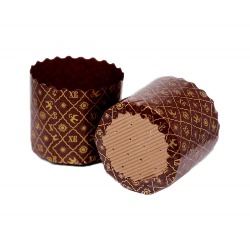 Одноразовая бумажная форма для куличей с усиленным дном, коричневый с рисунком - идеальное решение для пасхальной выпечки.