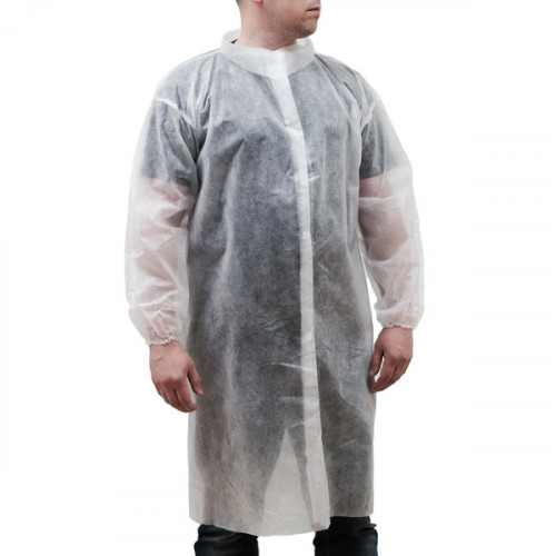 Одноразовый халат на липучках имеет размер XXL, подходит для мужчин и женщин. Используется для защиты одежды, а также для обеспечения должного санитарного состояния помещений, в которых установлены такие требования. Изготовлен из нетканого полипропилена, хорошо пропускающего воздух, так что не создает парникового эффекта. В качестве застежки предусмотрены липучки, что делает процесс переодевания простым и быстрым.