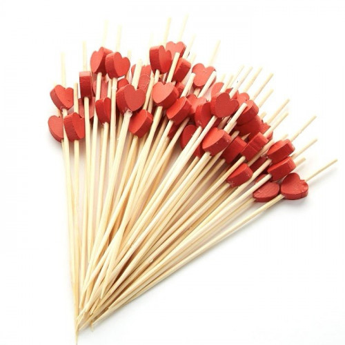 Декоративный элемент, в виде деревянного сердца, прочно прикреплен и безопасен при использовании.Шпажки являются хорошим дополнением к сервировке, тем самым делая еду и напитки более привлекательными.