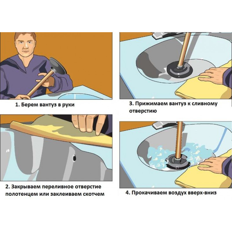 Это сантехнический инструмент для механической прочистки засоров в трубах канализации и удаления из них воздуха, препятствующего движению воды, а также использования эффекта «гидравлического удара» для продавливания небольших пробок-засоров. Состоит из резинового клапана и ручки.